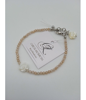 Браслет с цирконами и перламутровыми розочками — идеальный акцент для женственного образа.