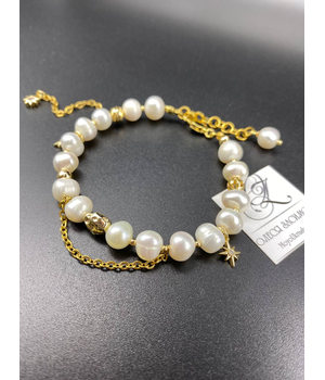 Браслет "Любовь без границ" с натуральным жемчугом и подвесками-звёздочками