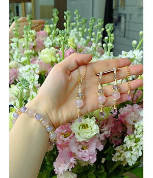 Нежность Принцессы, браслет из натуральных камней розового кварца и аметиста, позолота