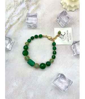 Браслет собран вручную на прочном ювелирном тросе. Сделан из натурального зеленого агата.