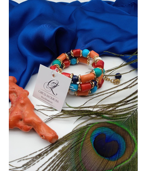 Турквенит, говлит, коралл лососевый, коралл красный, лазурит.