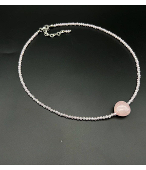 -Кулон 45+5см из цирконов и сердечко из розового кварца.