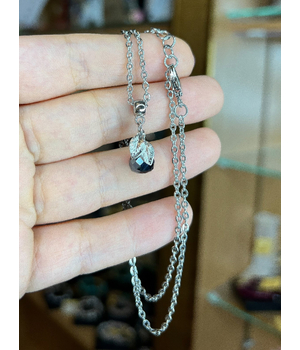 Черные Капельки, кулон мини с листиком, родированный