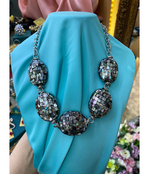 Колье состоит из 5 бусин, покрытых кусочками натурального перламутра.