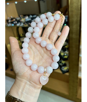 Нежная Любовь, колье макси из розового кварца 14 мм, позолота, 40 см