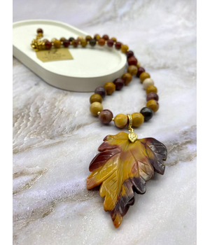 Очарование Осени, колье из горчично-бордовой яшмы, позолота