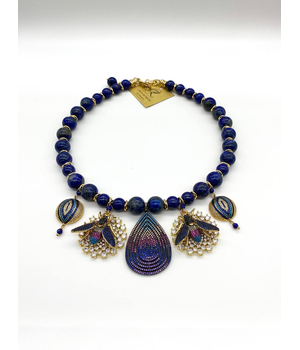 Полет Жука, колье из натуральных камней лазурита, позолота