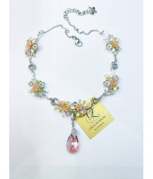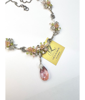 В прекрасном саду, колье из кристалла Сваровски, хризолита и жемчуга, родированное