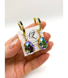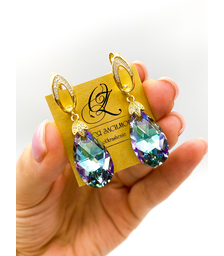 Кристальное Сияние, серьги с фиолетово-золотистыми кристаллам...
