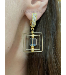 Куб в Кубе, серьги премиум с горным хрусталем, позолота