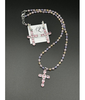 Кристальная Вера, серьги и кулон с разноцветными цирконами и розовыми фианитами