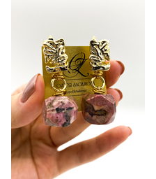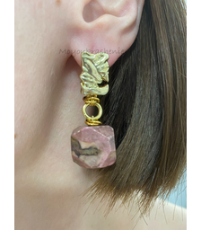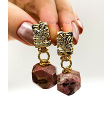 Роза Инков, серьги из родохрозита, позолота