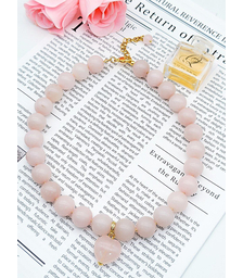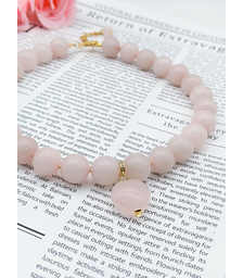 Нежная Любовь, колье макси из розового кварца 14 мм, позолота...