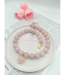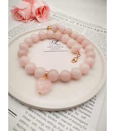 Нежная Любовь макси, колье из розового кварца в позолоте