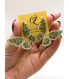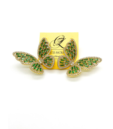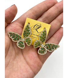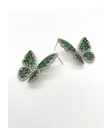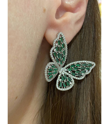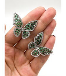 Бабочка Счастья, серьги с зелеными фианитами, родированные