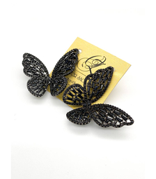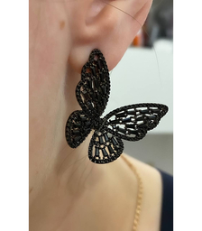 Бабочка Счастья, серьги с черными фианитами, чернение