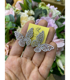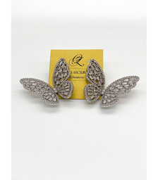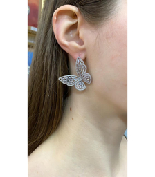 Бабочка Счастья, серьги с прозрачными фианитами, родированные