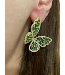 Бабочка Счастья, серьги с зелеными фианитами, позолота