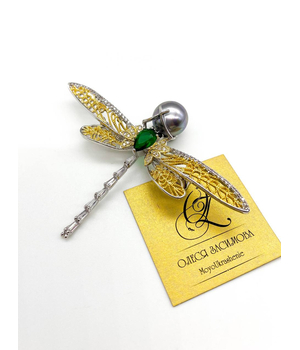 Очаровательная стрекоза с ажурными крылышками и натуральной серебристой жемчужиной - очень стильно.