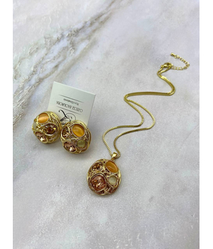 Кристальная Осень, серьги-гвоздики и кулон с кристаллами, позолота