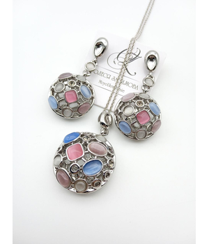 Кристальная Симфония, серьги-гвоздики и кулон с фианитами, родий