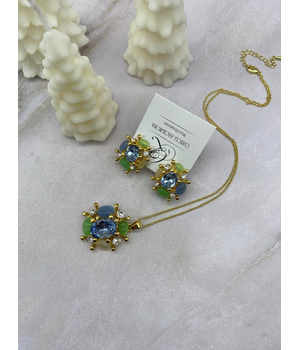 Мелодия Весны, серьги-гвоздики и кулон с кристаллами, позолота