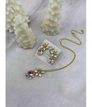 Очарование, серьги-гвоздики и кулон с кристаллами, позолота