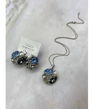 Нежное Сияние, серьги-гвоздики и кулон с кристаллами, родированные