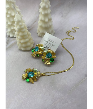 Танец Бабочек, серьги и кулон с кристаллами, позолота