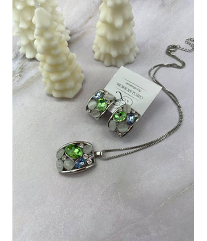 Весеннее пробуждение, серьги-гвоздики и кулон с кристаллами, родий