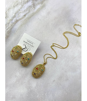Звездные нити, серьги-гвоздики и кулон с кристаллами, родий