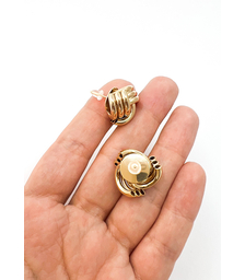 Роза на ветру, серьги-гвоздики с белой майоркой, позолота