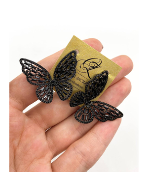 Бабочка Счастья, серьги с черными фианитами, чернение