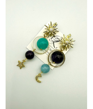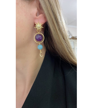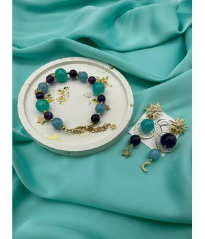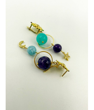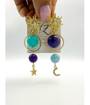 Серьги «Чудесные сны» — украшение с особой магией. Нежные оттенки амазонита, аквамарина и аметиста создают гармонию и притягивают внимание, а подвески в виде луны и звезды с фианитами добавляют сияния и загадочности. Эти серьги красиво удлиняют шею и подходят к образам в пастельных, белых и глубоких тонах. Идеальны для праздников, вечеринок и особых случаев, а также станут прекрасным подарком на Новый год, 8 марта, День матери или день рождения.