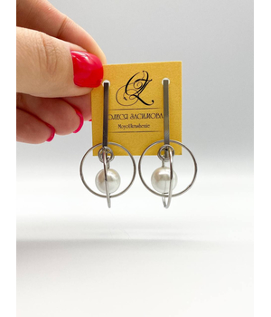 Геометрия Любви, серьги с кольцами и белым жемчугом майорка, родированные