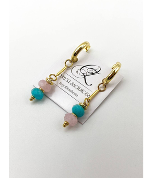 Серьги собраны из натурального агата и амазонита — лёгкие, аккуратные и нежные.