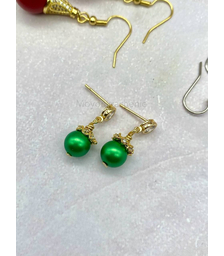 Сияние Еvoli, серьги с зеленой майоркой, позолота