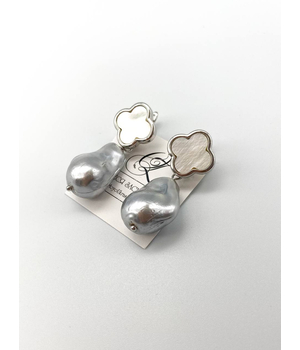 ПОКОРЯЮЩИЕ ВЗГЛЯДЫ - серьги из новой коллекции от MoyoUkrashenie. Созданы вручную из грушевидной барочной майорки серебристого цвета и стильных застежек с перламутровым клевером.