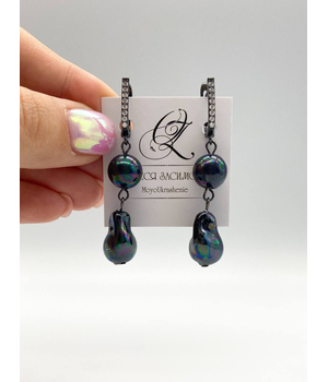 Тайны черного жемчуга - серьги созданы вручную из майорки черного цвета и фурнитуры с чернением.