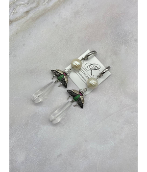 Жемчужный полет, серьги с жемчуг и горным хрусталем, родий